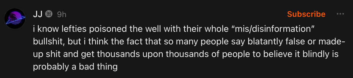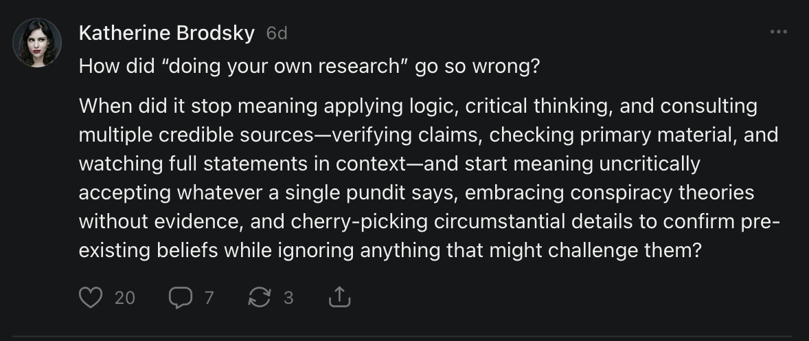 You distrust major institutions and official narratives. Great, so do most people. But that doesn’t mean you need to “like Hitler” or “call bullshit on dinosaurs” or accuse grieving parents of kids killed in massacres of being “FBI crisis actors”. Your distrust and paranoia are not a hall pass for making an ass of yourself.