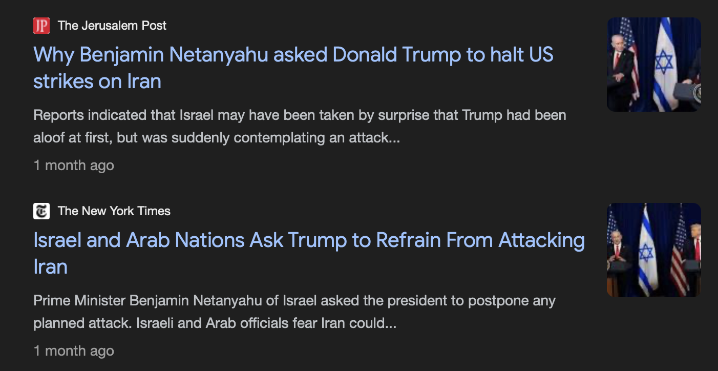 By the way, for those who still stupidly insist against all proof to the contrary that “America is fighting Israel’s war”, it may come as a shock that there was another group that tried until recently to pressure Trump not to strike Iran… Israel.